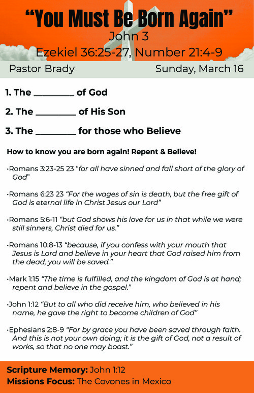Posted in 316 Sunday, John 3, Ezekiel 36, Numbers 21, Pastor Brady Howard, 3-16-2025