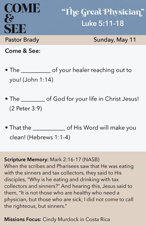 "The Great Physician" | Luke 5:11-18 | 5-11-2025