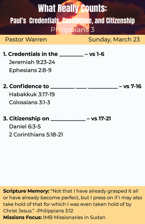 Posted in Philippians 3, Pastor Warren Green, Standalone Sermon, Jeremiah 9, Ephesians 2, Habakkuk 3, Colossians 3, Daniel 6, 2 Corinthians 5, 3-23-2025