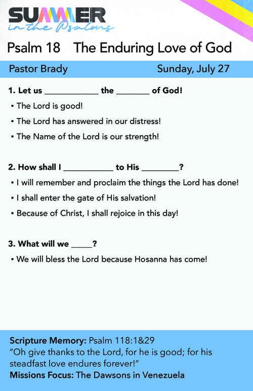 Posted in Summer in the Psalms, Psalm 118, Luke 24, Pastor Brady Howard