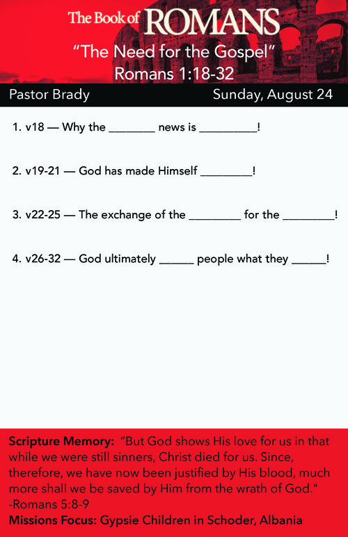 Posted in Pastor Brady Howard, Romans 1, 8-24-2025, 2025, The Book of Romans