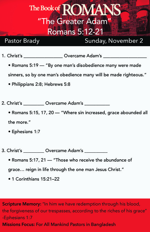 Posted in Pastor Brady Howard, 2025, 11-2-2025, Romans 5, Philippians 2, Hebrews 5, Ephesians 1, 1 Corinthians 15