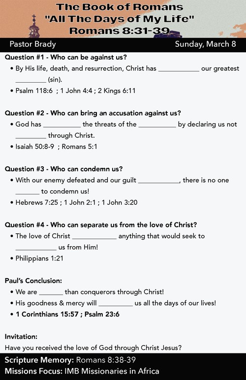 "All the Days of My Life" | Romans 8:31-39 | 3-8-2026