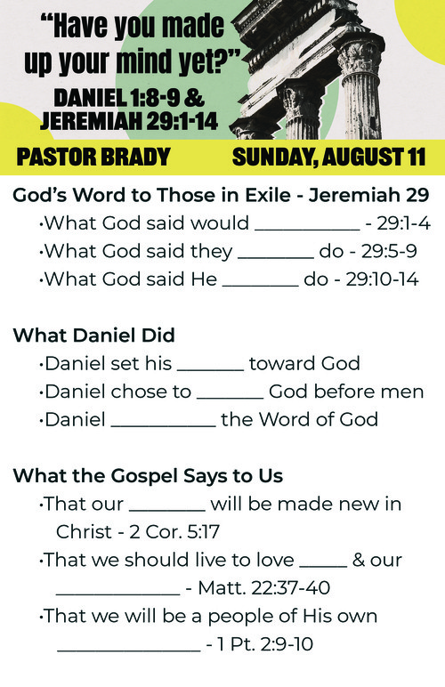 "Have you made up your mind yet?" | Daniel 1:8-9 | 8-11-2024