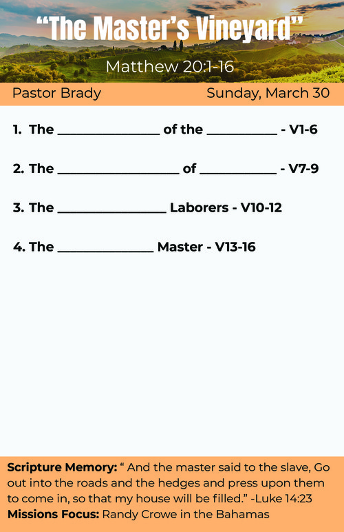 Posted in 3-30-2025, 2025, Pastor Brady Howard, Matthew 20, Standalone Sermon