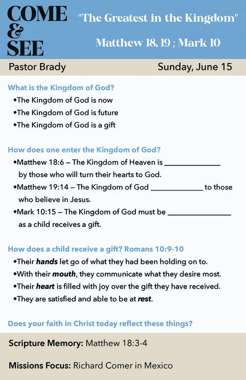 "The Greatest in the Kingdom" | Matthew 18, 19 & Mark 10 | 6-15-2025