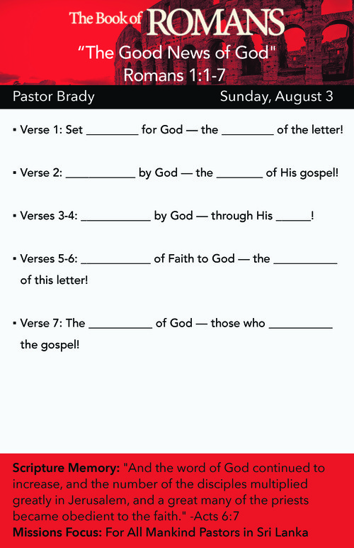 Posted in The Book of Romans, Romans 1, Pastor Brady Howard, 8-3-2025, 2025